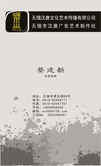 灰色墨纹创意竖版名片